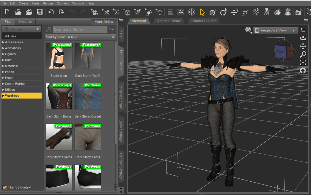 DAZ Marketplace has an extensive 3D library. Daz Studio has invested years in developing a broad marketplace where to download a huge collection of models. They serve as assets to the projects, clothing, even settings such as natural landscapes.