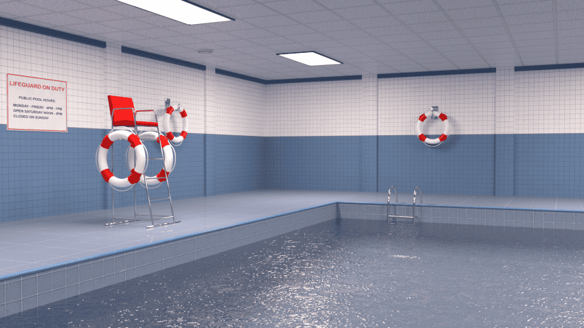 If you are seeking a high quality and well-optimized public indoor pool that would make your creative project more appealing, then you can’t go wrong with this 3d asset. Firstly, it comes designed with all the props you would need to project whatever scene you have in mind. The lighting set-up is also top-class. The set features a spacious swimming pool, ladder, lifesaver, lifeguard chair, and a highly configurable exit door. All of these make it look suitable for a wide range of applications.